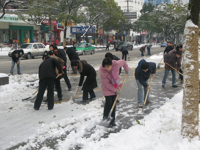 2008年元月下旬合肥地区连降暴雪,门路积雪严重,給交通带来诸多未便。为响应市政府关于全市大扫雪的建议,1月26日至28日,人生就是就博集团全体人员在董事长李武好的率领下连续三天进行义务扫雪除冰运动。